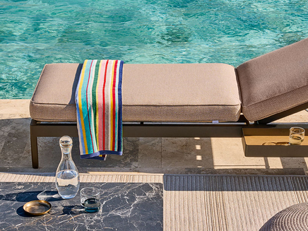 Eigentlich haben wir unsere Badematte als unkomplizierte Auflage für die Balcony-Liege entworfen. Unkompliziert, weil man sie zusammenrollen kann und sie in jede Waschmaschine passt. Dann haben wir festgestellt, dass sie ebenso gut für den Strand geeignet sind. Gefertigt werden sie aus allen Stoffen und mit einem abgesteppten Vlies gefüllt. Das macht sie bequem – egal ob als Liegenauflage oder den Urlaub am Meer.