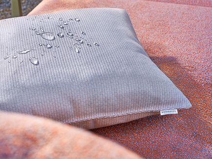 Alle Designstoff-Kollektionen für Kissen und Polsterbezüge werden aus 100 % Polyacrylgewebe gefertig und sind zudem wasser-, öl- und schmutzabweisend imprägniert (Teflon®). Diese Stoffe zeichnet sich durch hohe Farb- und Lichtechtheit aus, sind wetterfest und strapazierfähig, maßstabil, verrottungsbeständig, reißfest und zudem pflegeleicht. Alle Designpolsterstoffe sind von Hand, bzw. in der Waschmaschine bei 30° waschbar und auf kleiner Stufe bügelfähig.