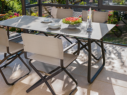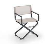 Wie bei unserem pflegeleichten AHOI Programm: die Sessel erinnern an klassische Regiestühle. Ihr Korpus aus pulverbeschichtetem Aluminium, für den es verschiedene Bespannungsvarianten gibt, ist jedoch ein überraschendes Leichtgewicht. Zwei dazu passende Tische stehen zur Auswahl – den größeren kann man genau wie die Sessel platzsparend zusammenklappen. Als wetterfeste Tischplatte empfehlen wir die HPL-Version. Oder, für Klassik-Fans, massives Teak oder Teak Deck – was will man mehr!