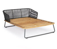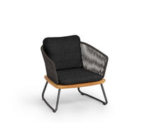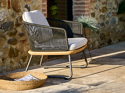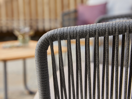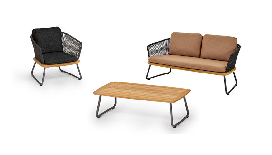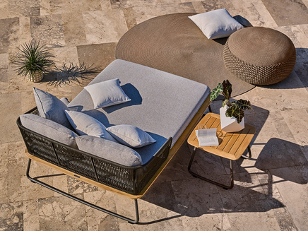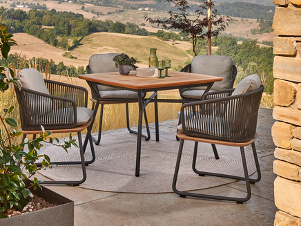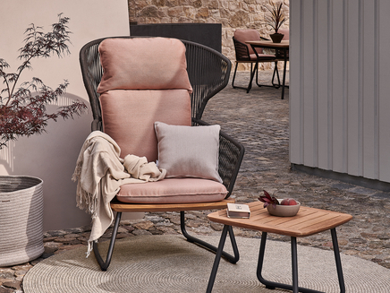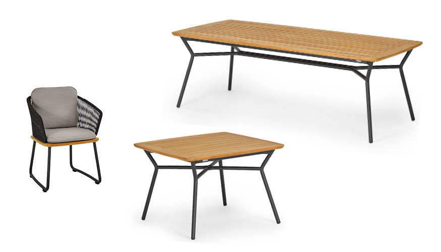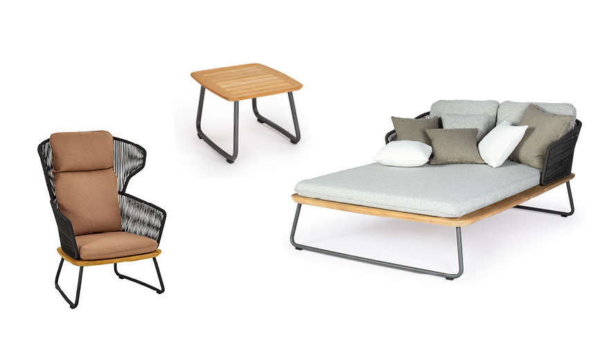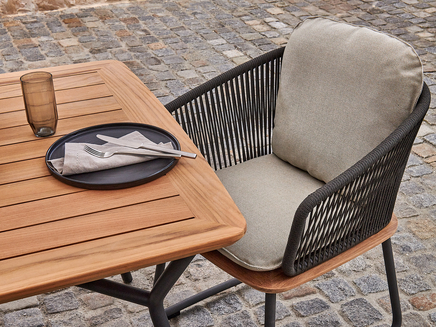 Würde man DENIA ein Tier zuordnen – es käme das Chamäleon heraus. Denn DENIA ist individuell einsetzbar. Sessel und Sofa sehen auf der Terrasse, im Wellnessbereich – und aufgrund ihrer komfortablen Polster auch vor dem Kamin gut aus. Das Gestell haben wir aus Aluminium und Teakholz gefertigt, die Lehnen mit hochwertigen Textilkordeln bespannt. Passend dazu sind gleichnamige Tische erhältlich.