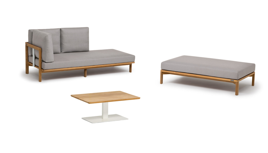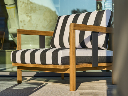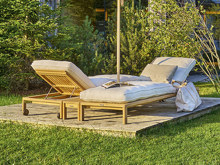 Die Hamptons stehen für Sommer, Sonne, amerikanisches Stilgefühl. Deshalb haben wir eines unserer Möbelprogramme danach benannt. NEW HAMPTON hat eindeutig das Zeug zum Klassiker. Sessel und Sofas sind komfortabel und bequem. So bequem, dass sie längst Einzug ins Wohnzimmer gefunden haben. Die Teakgestelle werden durch pulverbeschichtete Metallwangen in Weiß, Anthrazit oder Edelstahl ergänzt. Wir bieten sie in verschiedenen Varianten an – mit dicken Polstern, die wir in vielen Farben und Qualitäten beziehen. Passend dazu gibt es Hocker, Beistelltische und eine Liege mit Anstelltisch, auf der man nicht nur von den Stränden Long Islands träumen kann.