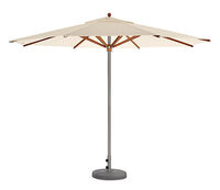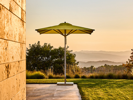 DAS KLASSISCHE MIT DEM MODERNEN, WARME TEAKHOLZSTREBEN UND FEIN GESCHLIFFENER EDELSTAHL: UNSERE TRENDSCHIRME SETZEN AUF MATERIALKONTRAST UND SIND GERADE DESHALB ALLESKÖNNER.