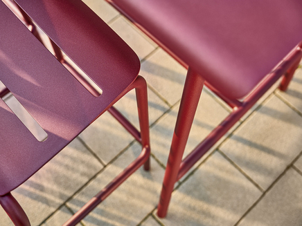 Mit seiner schlichten Eleganz gelingt VAPIO der Spagat zwischen mondänem Flair und heimeliger Behaglichkeit. Die klaren Linien, kühnen Schwünge und die mediterrane Leichtigkeit unterstreichen das Ambiente moderner (Terrassen-) Architektur. Ebenso gekonnt setzt die Aluminium-Kollektion gefällige Kontrastpunkte in traditionellen Objekten. Während auf kleinen Terrassen bzw. Balkonen eine kompakte Tischgruppe mit praktischen Bänken und Hockern Freude bereitet, sorgt die High-Dining-Variante in der Gastronomie und Hotellerie für ein besonderes Erlebnis.
